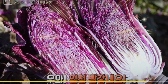 천기누설에서 최근 급증하고 있는 여성의 대장암 발생률을 낮출 수 있는 식재료인 빨간배추를 소개합니다.