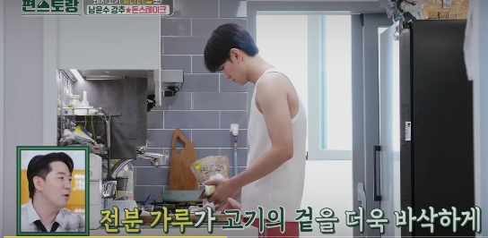편스토랑 244회에서는 알뜰한 남윤수가 돼지고기를 한 번에 2kg을 구입해서